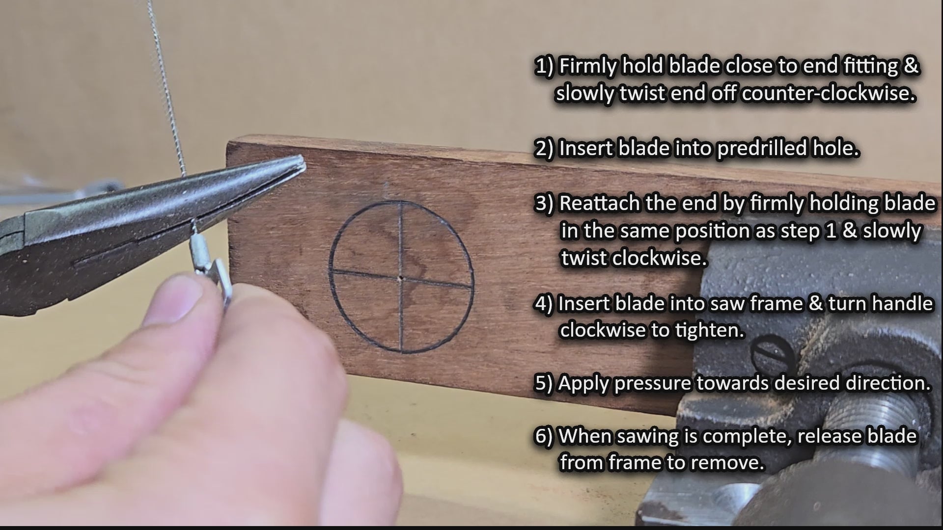 - To change blades on the coping saw, unscrew the handle. When inserting a new blade, hook the coping blade end on the top, then screw in the handle until you can hook the bottom end of the coping blade. Tighten handle until tight for proper tension, before use.